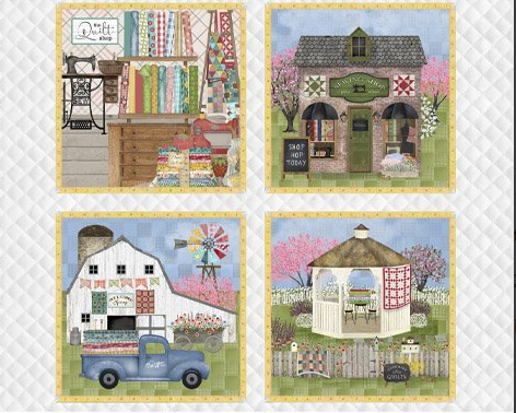 This beautiful fabric features a patchwork of scenes celebrating quilting. The small touches of quilt shops, quilts, sewing machines, sewing notions, and a blend of beautiful florals, make this line perfect for any project! With the large 36" block panel, your options are endless!