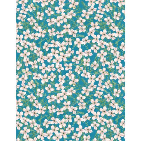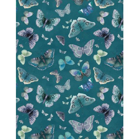 Midnight Garden is dramatically colored in intense jewel-tones of fuchsia, teal, and green with ivory, shades of pink, and black.
