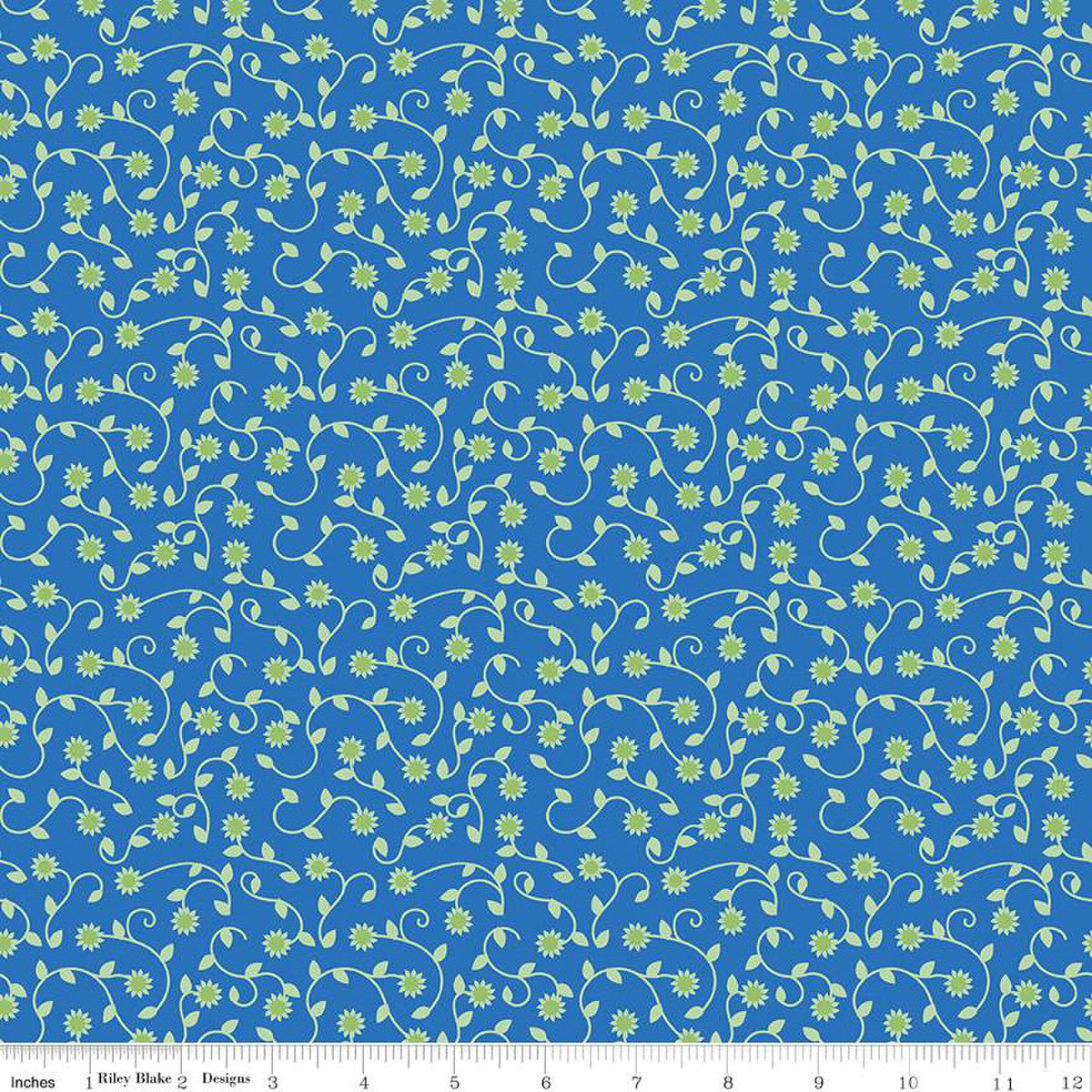 This line is filled with blues, yellows and whites and features sunflowers, florals, dots, vines, script words, seeds, and seed packets.