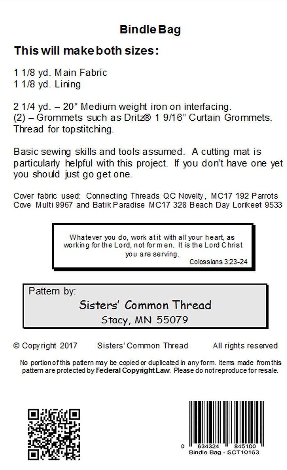 Two sizes. Full pattern pieces included.