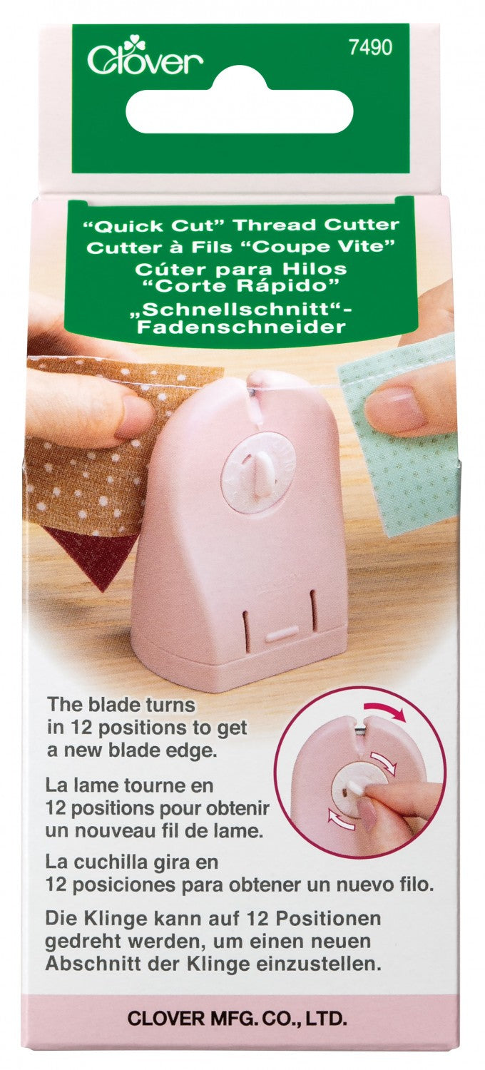 The Quick Cut Thread Cutter allows you to quickly and easily separate your quilt chain pieces. The dial allows you to move the blade 12 points to get that sharp blade edge as needed, it uses Clover’s 45mm Rotary Cutter blade which can be replaced.