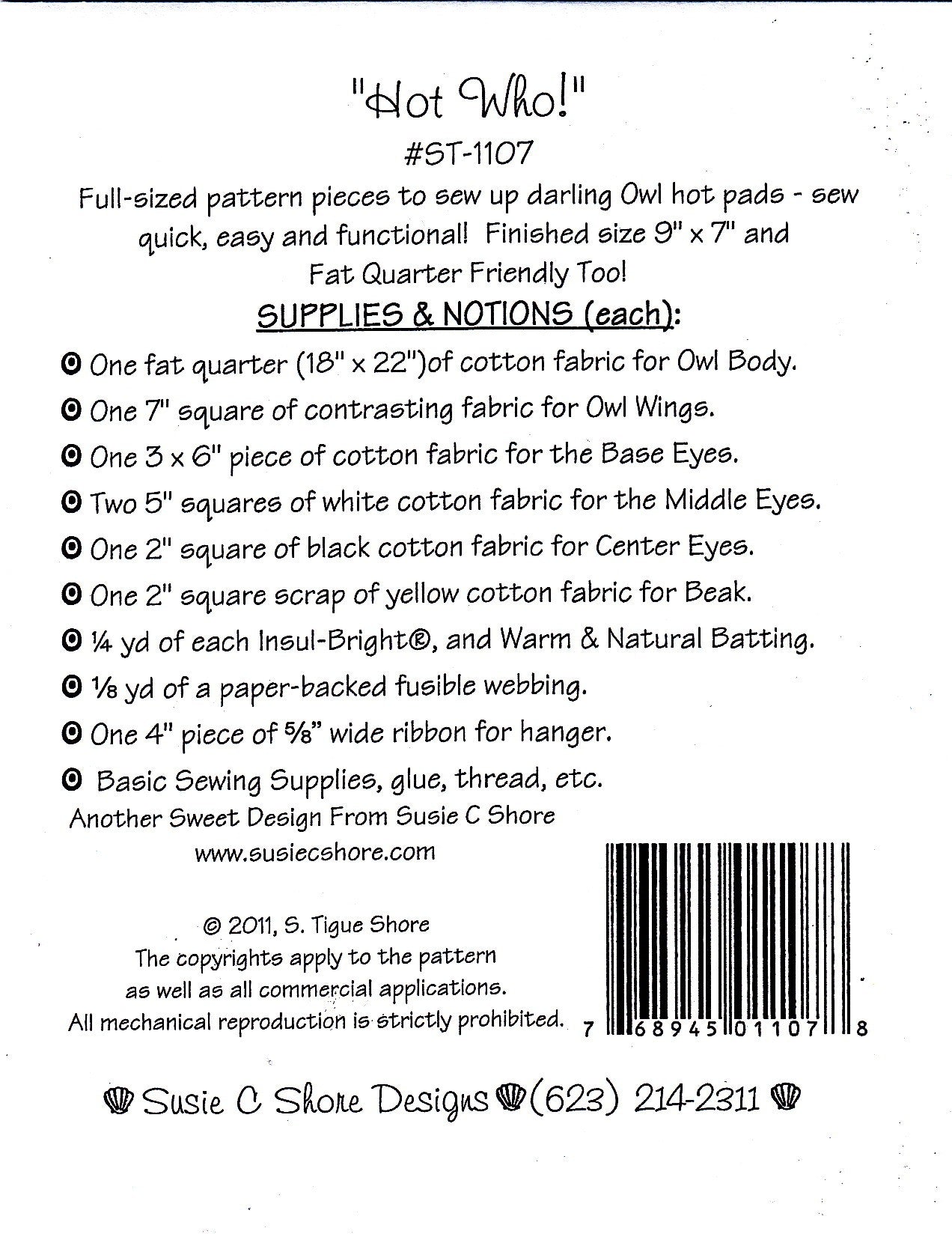 Full-sized pattern pieces to sew up darling hot pads - sew quick, easy and functional! Finished size 9in x 7in and Fat Quarter Friendly Too!