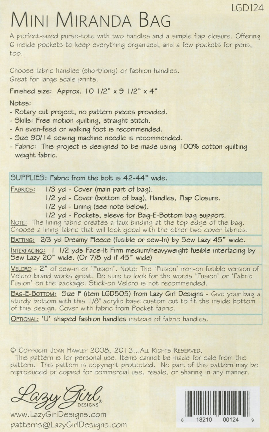 Uses # LGD505 Bag-E-Bottoms Size F