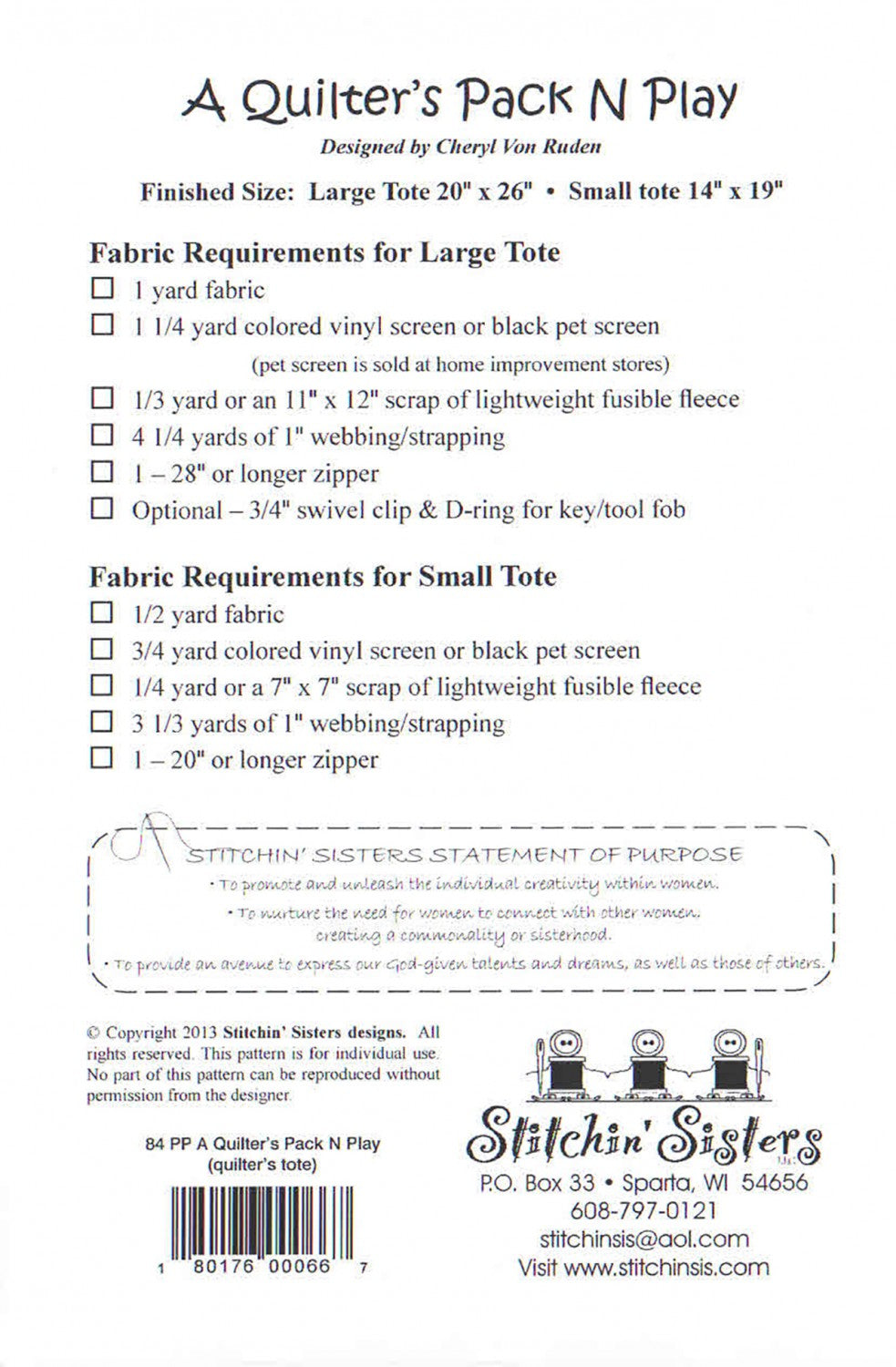 Get Ready to pack & play. Tote your mat, ruler and supplies for show and tell projects. Large tote: 20in x 26in Small tote: 14in x 19in vinyl mesh suggested.