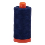 Aurifil’s 50wt/2ply thread is our most versatile and most popular Cotton thread. It is available in all 270 of our Cotton colors, and is wound on our iconic orange spool. The 50wt is strong and thin, and results in remarkably flat and crisp seams. While it is wonderful for piecing, subtle quilting & topstitching, and English Paper Piecing it also works incredibly well for Needle Turn Applique, Bobbin and Machine Lace, Machine Applique (Straight Stitch, ZigZag, Blind Hem and Blanket Stitch,) Machine Embroidery, Dense Machine Quilting, Subtle Machine and Longarm Quilting, Basting, Whole Cloth and Micro Quilting, and Dense Background Designs.