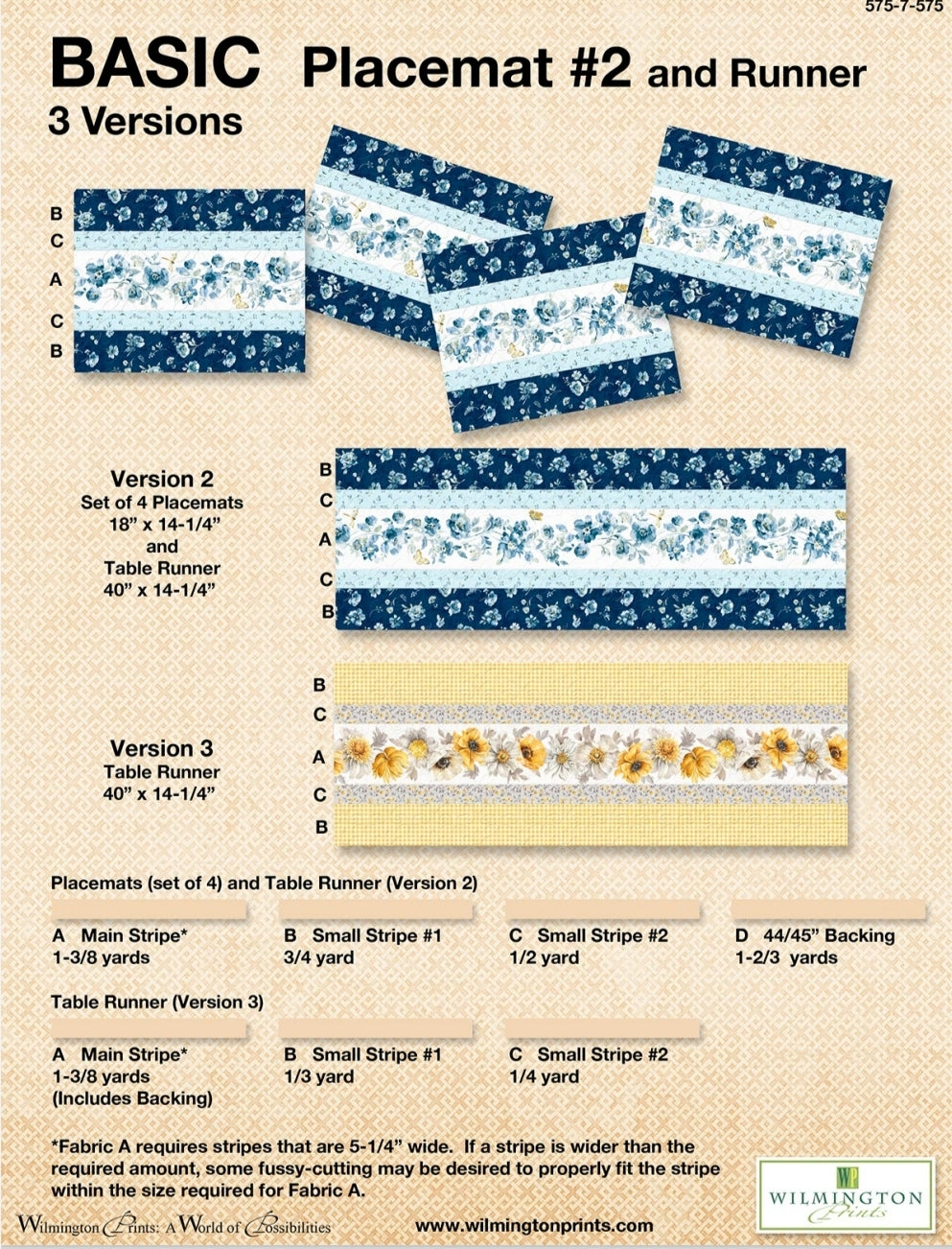 This pattern is perfect for making easy to make bordered placemats and a table runner. Pattern includes fabric requirements and instructions to make your choice of 4 placemats, 1 table runner or both the placemats and table runner.
