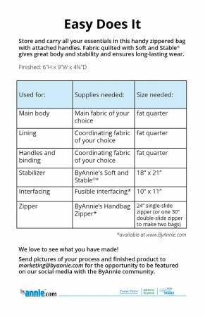 Everyone will love the results and the usefulness of this little project. The handy zippered bag with attached handles will store and carry all their essentials. The bags also make quick, easy, and useful gifts!