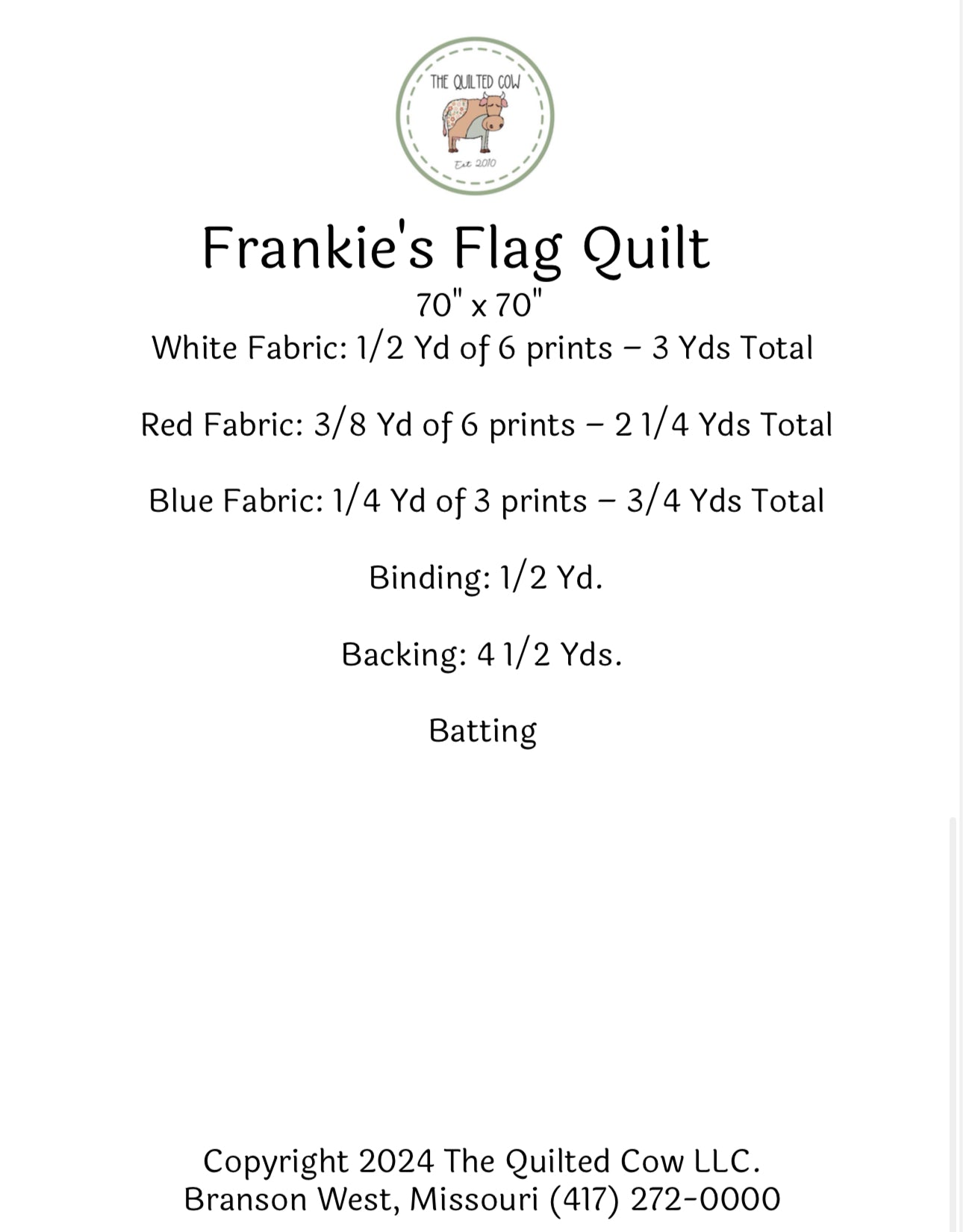 Fabric For Quilt Top & Binding