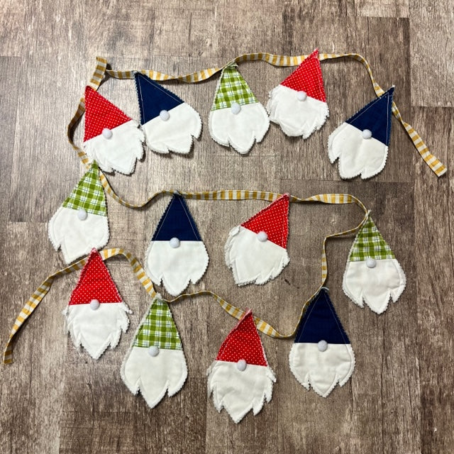 Make this cute gnome bunting in a variety of fabrics to add a touch of whimsy to your next holiday gathering.