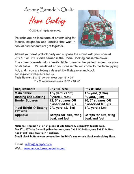 Insulated Casserole Tote keeps food hot or cold and transforms into a table runner when you unwrap it! Combines functionality and your good taste. Instructions for two standard casserole dish sizes 9" x 13" and 8" x 8".