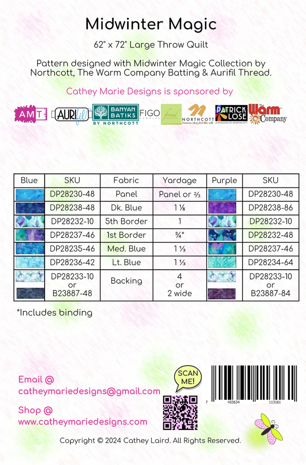 62 inch x 72 inch Large Throw Quilt Pattern designed with Midwinter Magic Collection by Northcott, The Warm Company Batting and Aurifil Thread. Cathey Marie Designs' products are created with you in mind. No More Wasted Money on patterns and tools with instructions that are too confusing to understand!