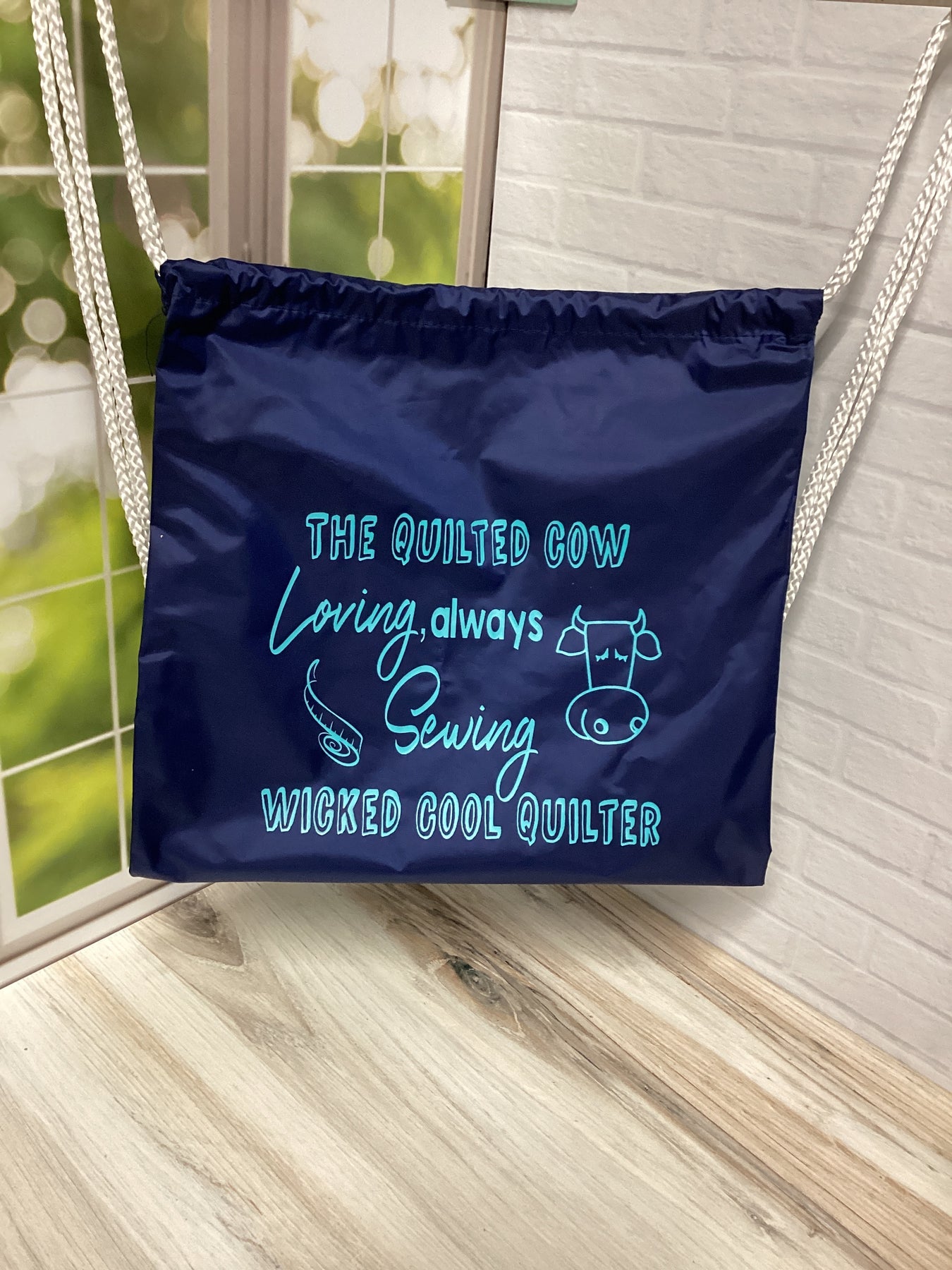 Quilted Cow Drawstring Backpack