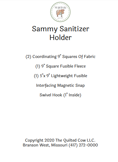 Kit includes fabric and hardware needed to make one holder.