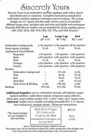 Embroidery machine applique quilt .. 9 classic style blocks & 10 variations. Embroidery machine applique techniques & re-hooping included. Lap 56in x 72in, Large lap 66in x 84in & Bed 84in x 102in. Includes printable PDF files for fusible web. ART, EXP, HUS, JEF, PCS, VIP, VP3 & XXX formats
